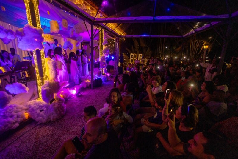 A noite também marcou a estreia de ‘Reluz’, novo espetáculo do Tambores de Aço, que celebra o Natal e a renovação da esperança. A apresentação trouxe um repertório plural, combinando clássicos natalinos, como Noite Feliz e Canção dos Sinos, com músicas internacionais. A cada música, o público acompanhava a sincronia entre som, luz e elementos de cenografia, que transformaram o hotel em uma atmosfera natalina poética.