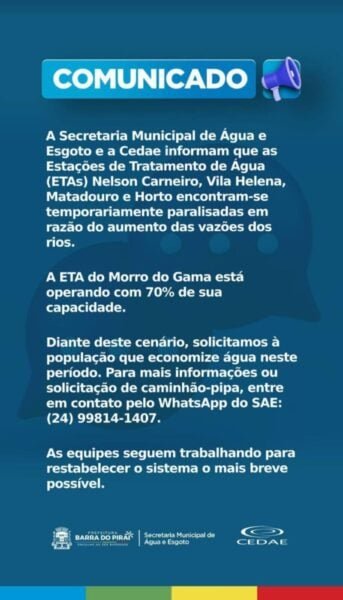 Foto: Divulgação Barra do Piraí – A Secretaria Municipal de Água e Esgoto (SAE) e…