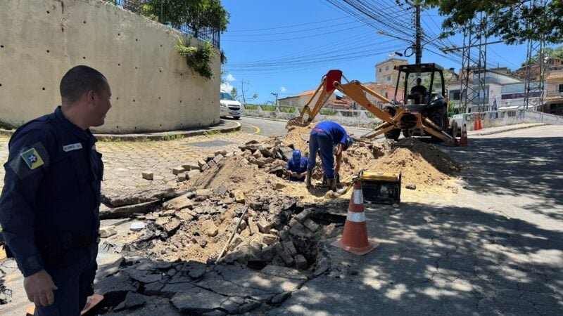 Reparo em tubulação mobiliza equipes no Centro de Barra do Piraí