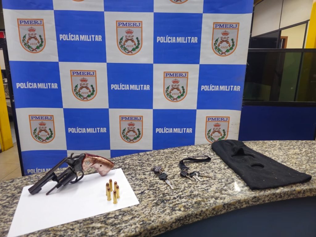 Dois suspeitos de praticarem um assalto no bairro Retiro, em Volta Redonda, no início da madrugada deste domingo (11), foram presos momentos depois na Rua C, no bairro Roselândia, em Barra Mansa. Segundo a Polícia Militar, a dupla roubou uma moto Bros 160, fugiu para a cidade vizinha e escondeu o veículo roubado em uma área de mata. Com um deles, os agentes arrecadaram um revólver calibre 38 com seis munições intactas, além de uma touca ninja.