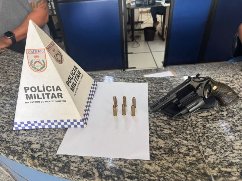 Em seguida, o veículo foi abordado e o condutor identificado. Ele admitiu ser o proprietário da arma e afirmou que agiu por nervosismo ao avistar a equipe policial.