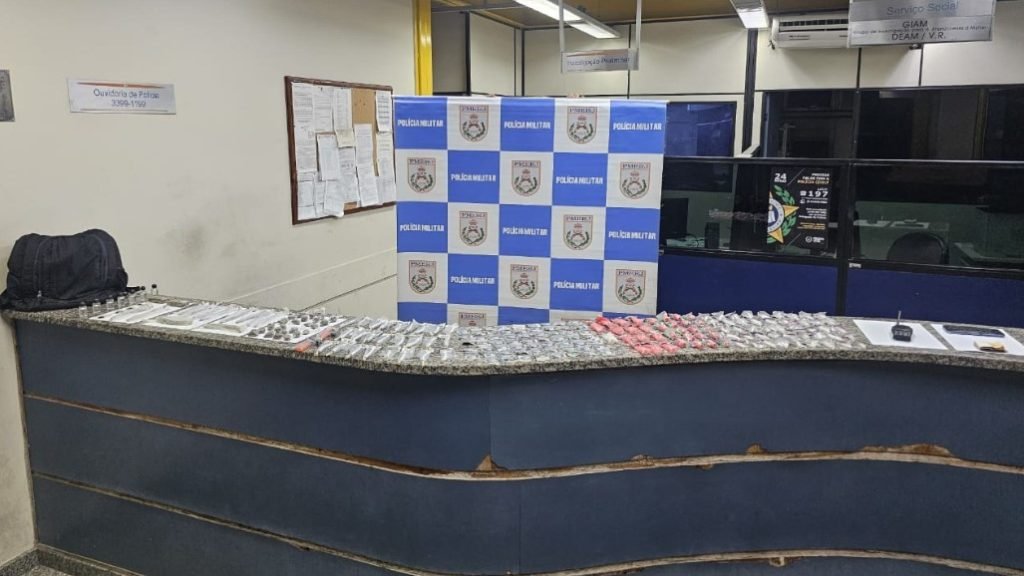 Em Barra Mansa, a prisão de uma jovem de 18 anos foi feita na Rua Geraldo de Paula, no bairro Paraíso. Foram recolhidos 111 pinos de cocaína, 24 trouxinhas, 12 tiras e dois tabletes pequenos de maconha, quatro sacolés de haxixe, 86 pedras de crack, dois kits com pedra de crack, cachimbo, isqueiro e palha de aço, sete frascos de loló, rádio de comunicação e R$ 84 em espécie.