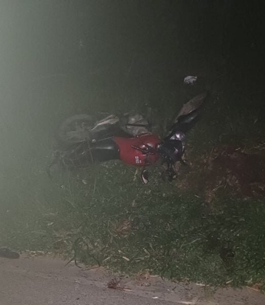 O motociclista e o veículo foram parar no canteiro lateral. Ele sofreu ferimentos graves e foi socorrido para o Hospital São João Batista.