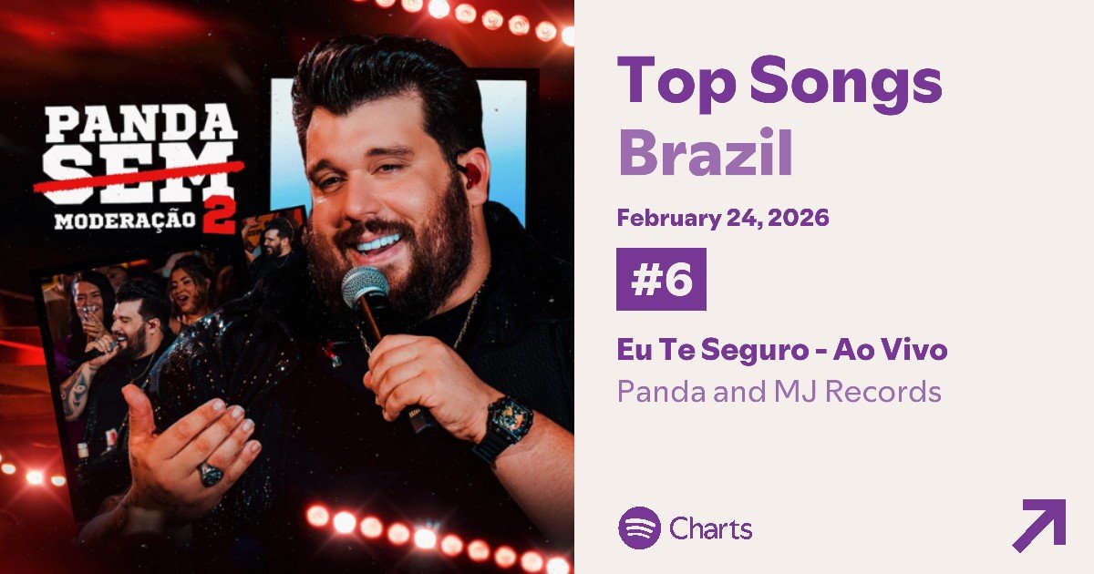 O funk domina quase todo o top 10 do Spotify Brasil, exceto por uma música. “Eu Te Seguro (Ao Vivo)”, do cantor Panda, é a responsável por fazer o estilo não aparecer entre todas as 10 primeiras canções mais tocadas no país no dia 24 de fevereiro. A faixa, que foi lançada em outubro de 2025, tem mais de 124 milhões de streams na plataforma, sendo 910,107 somente na data citada.