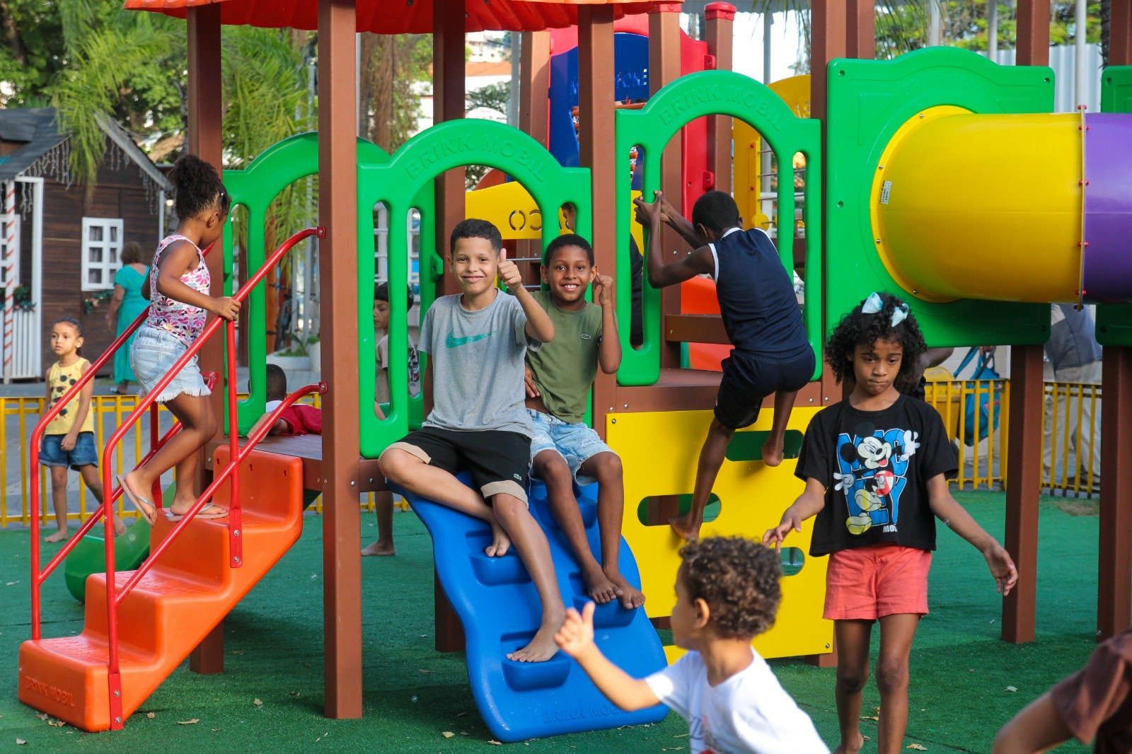A praça também virou ponto de encontro para quem acompanha a programação pelas redes. Foi o caso de Maria Lúcia, moradora da Caixa d’Água Velha, que pediu para a mãe levá-la assim que viu o anúncio da prefeita no Instagram. “Eu achei tudo muito legal!”, disse. A mãe, Jéssica, completou afirmando que estava tudo bonito, organizado. “É o primeiro Natal assim que vejo para as crianças”, afirmou a moradora.