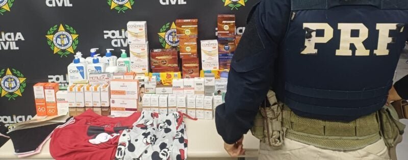 Questionada, a passageira confessou que os produtos eram frutos de furtos em farmácias na região da cidade de Volta Redonda e que havia contratado o motorista para transportar os itens pelo valor de R$ 200.